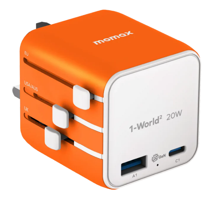 MOMAX 1-World 20W 2接口旅行插座 1*USB-C+1*USB-A 白